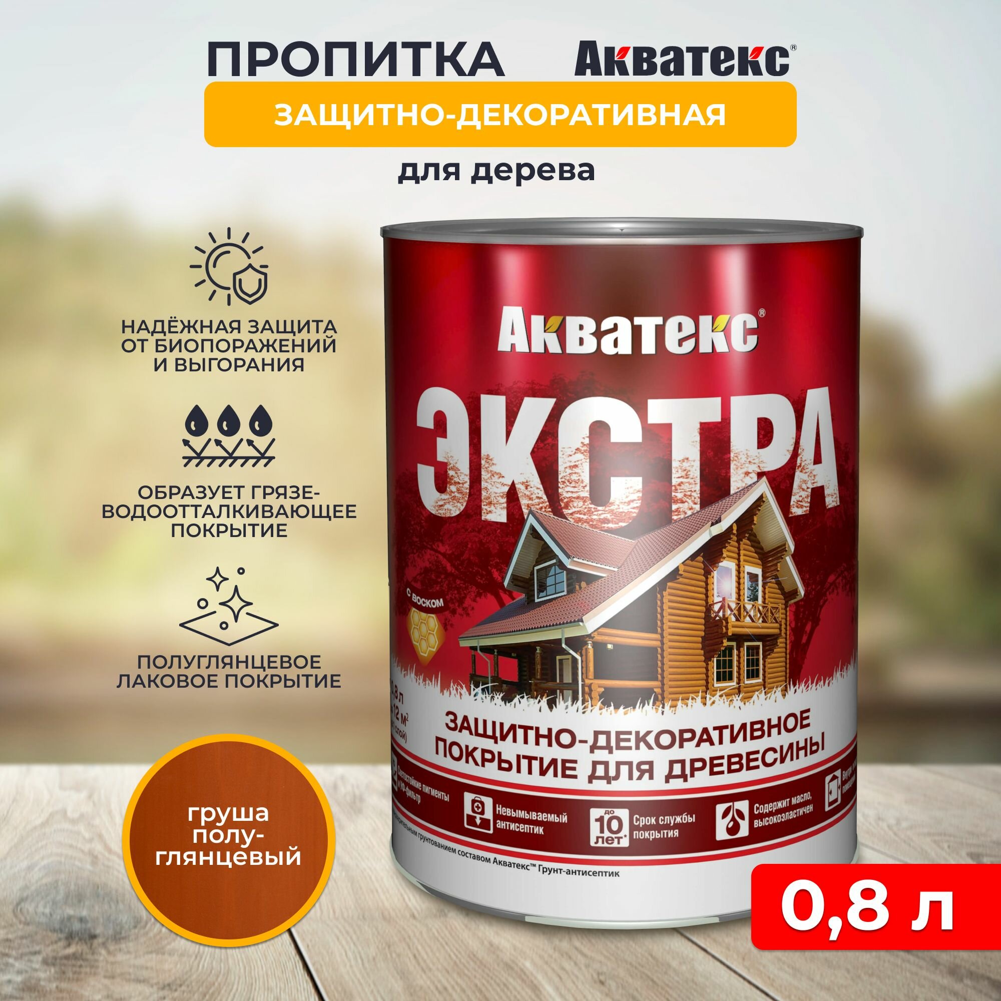 Защитно-декоративная пропитка для дерева Акватекс экстра, пропитка с маслом для дерева груша, 0,8л