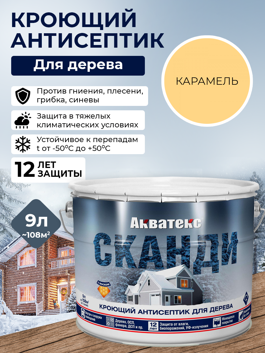 Антисептик Акватекс Сканди для древесины кроющий акриловый полуматовый карамель 9л
