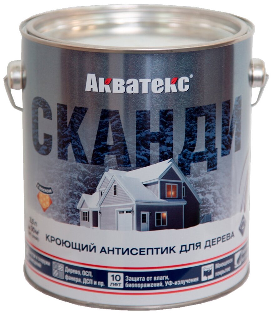 Акватекс Сканди антисептик для древесины кроющий акриловый полуматовый База С 2,5л