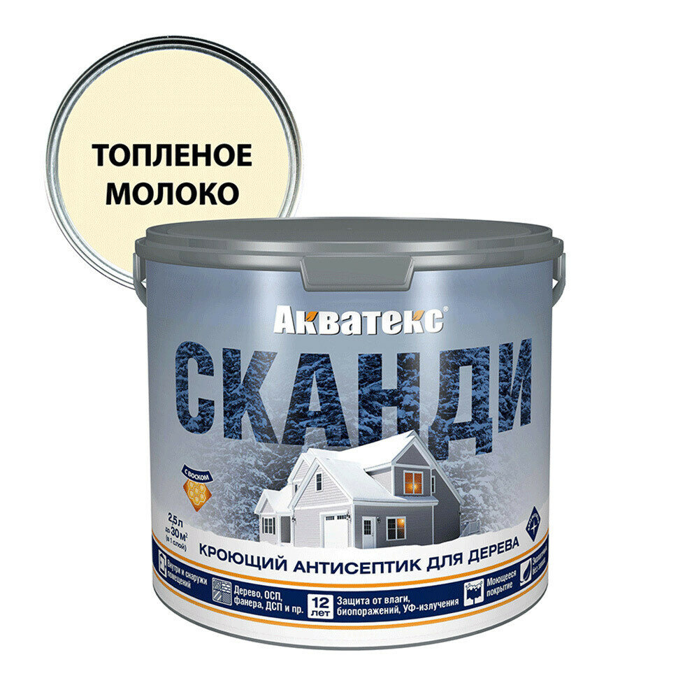 Кроющий антисептик для древесины Акватекс Сканди топленое молоко 2,5л