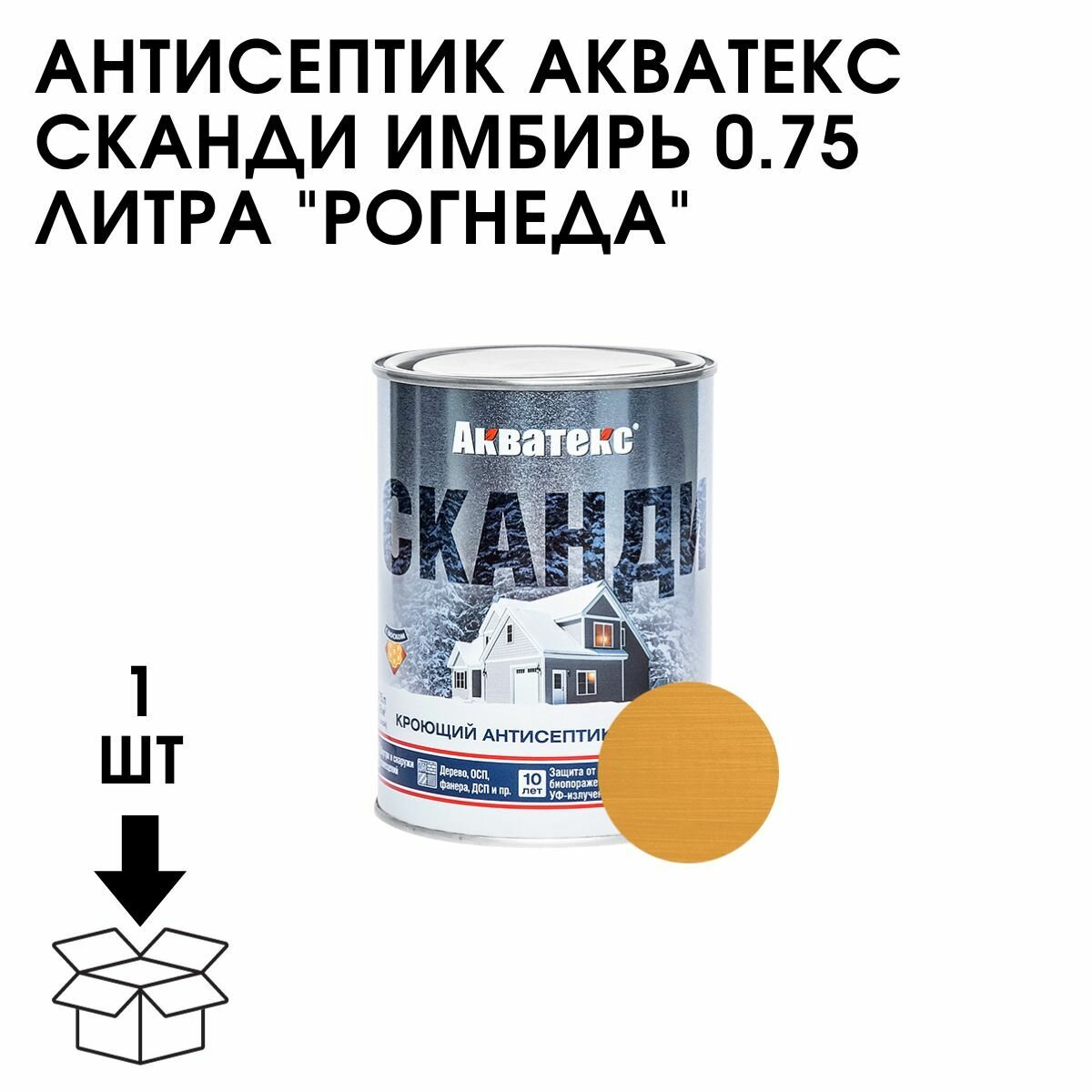 Акватекс Сканди антисептик для древесины кроющий акриловый полуматовый, карамель (0.75 л)
