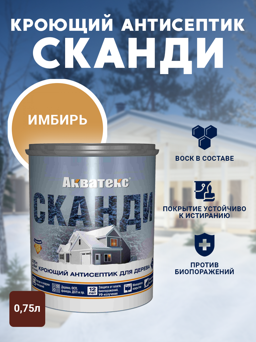 Купить Антисептик Акватекс Сканди для древесины кроющий акриловый полуматовый имбирь 0,75л