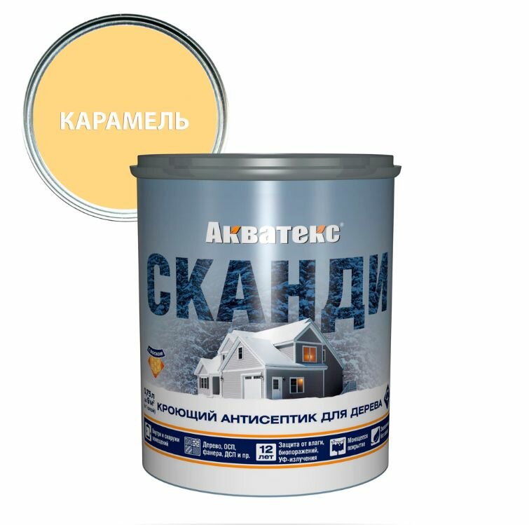 Акватекс Сканди антисептик для древесины кроющий акриловый полуматовый, карамель (0.75 л)