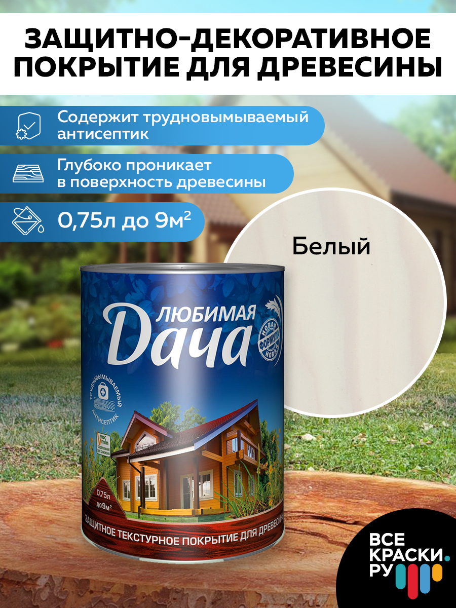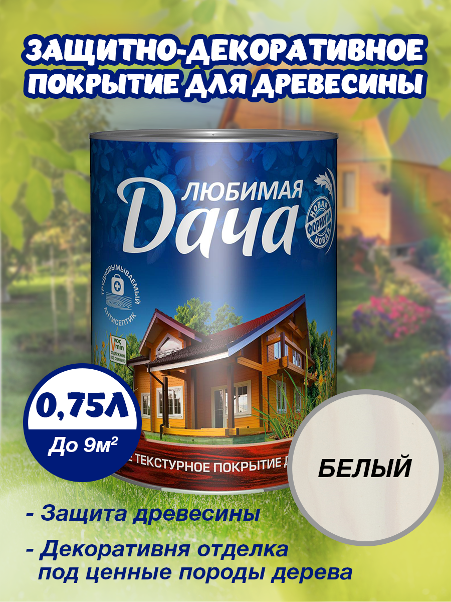 Защитно-декоративное покрытие для древесины Любимая дача, белый, 0,75л