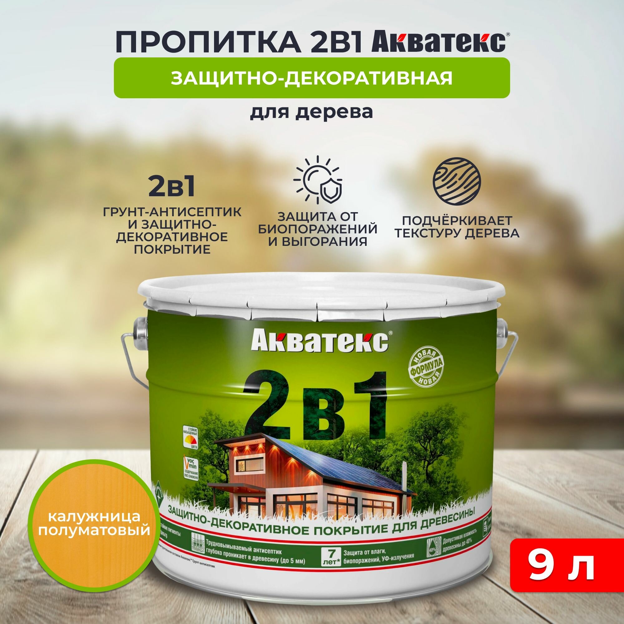 Защитно-декоративное Акватекс покрытие для древесины, пропитка по дереву, 2в1, сосна, 9л