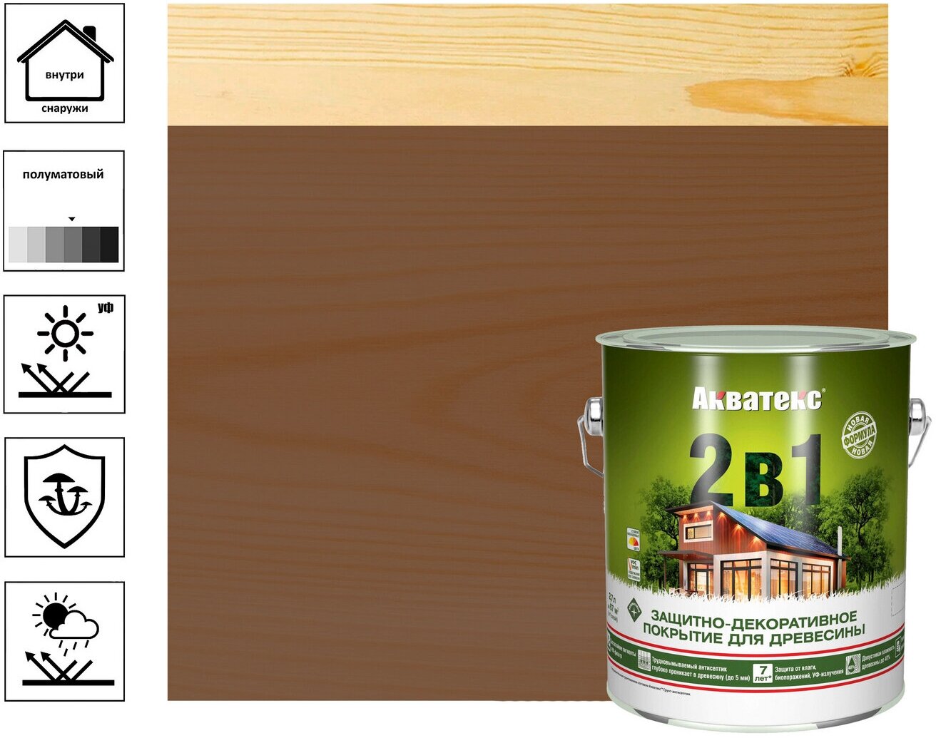 Защитно-декоративное Акватекс покрытие для древесины, пропитка по дереву, 2в1, орех, 2,7 л