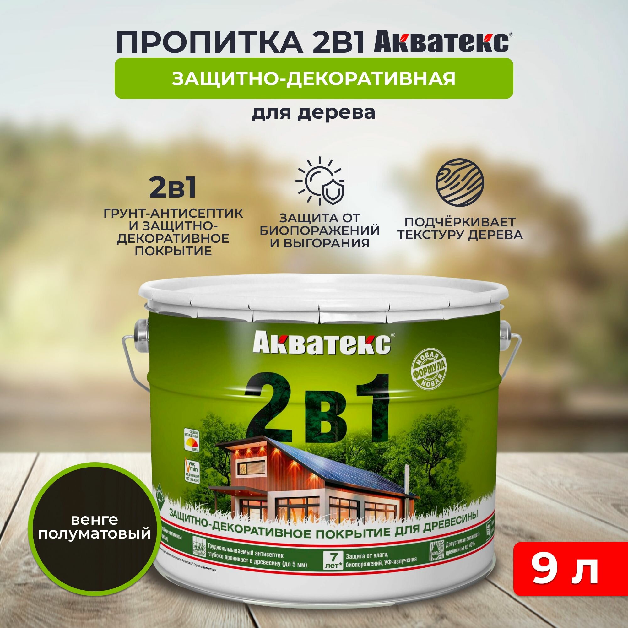 Защитно-декоративное Акватекс покрытие для древесины, пропитка по дереву, 2в1, венге, 9л