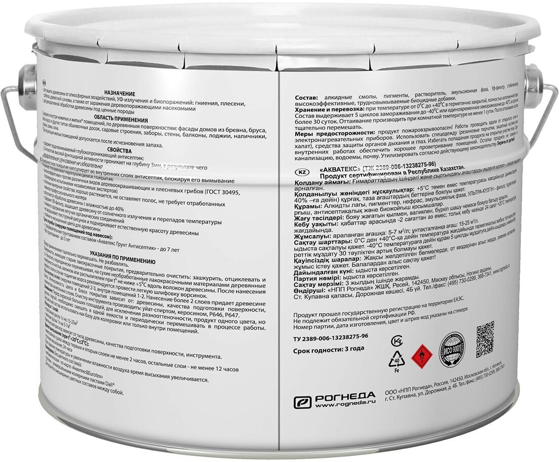 Акватекс 2 в 1 грунт-антисептик алкидный полуматовый лессирующий (тик, 10л)
