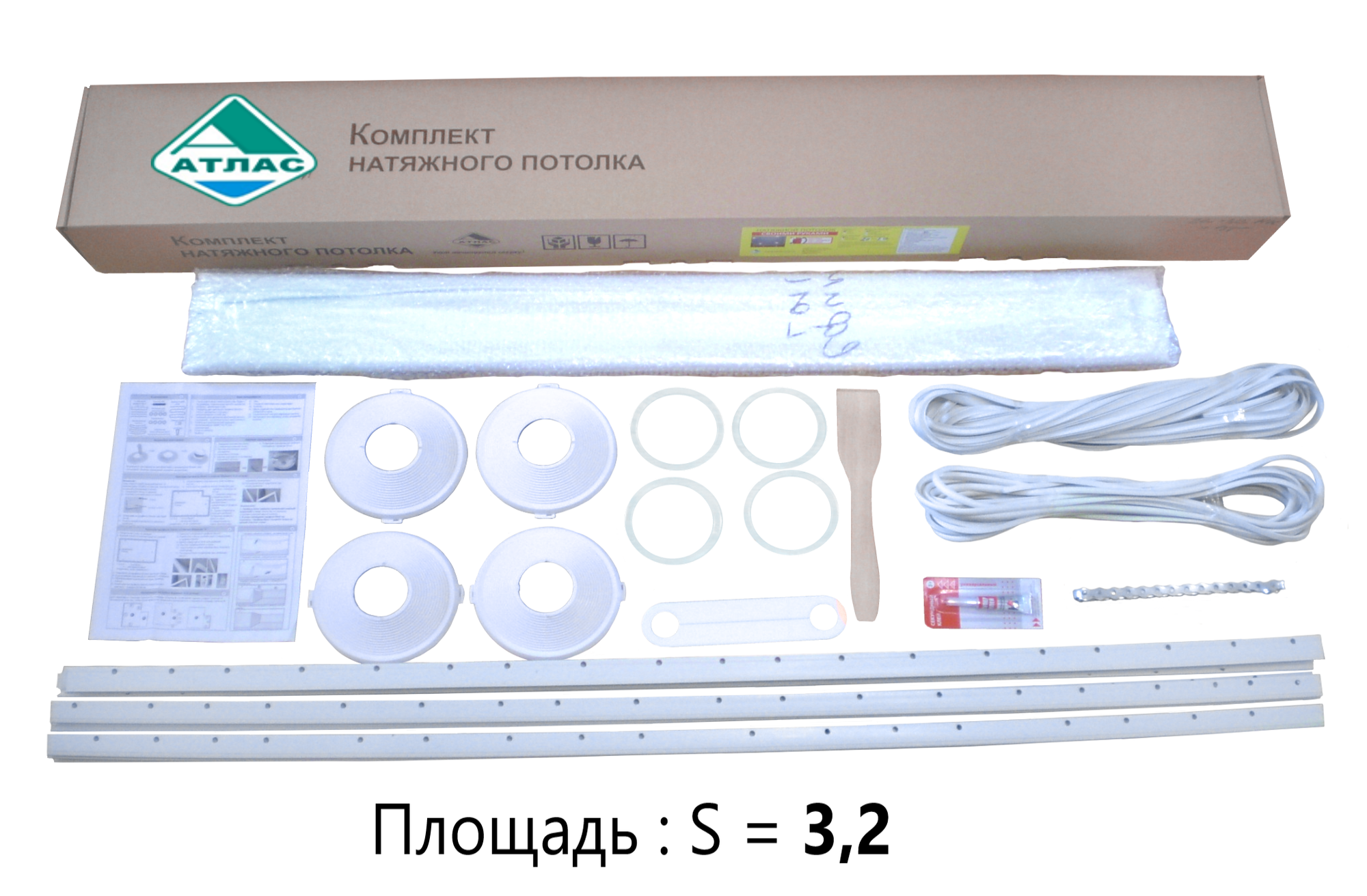 Атлас Комплект натяжного потолка "Своими руками" № 8 для помещения (2,6 м * 3,8 м) - полотно (2,7 м*4,0 м)
