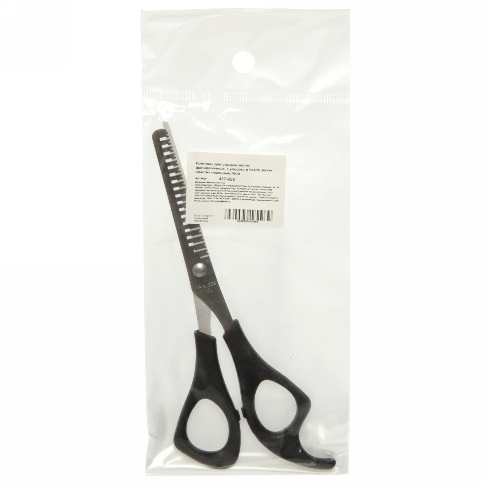 Ножницы для стрижки КНР волос филировочные, с упором, ручки пластик овальные, 16 см интересное: