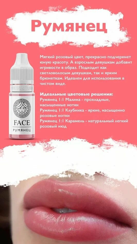 Пигмент Face для татуажа губ румянец, 12 мл