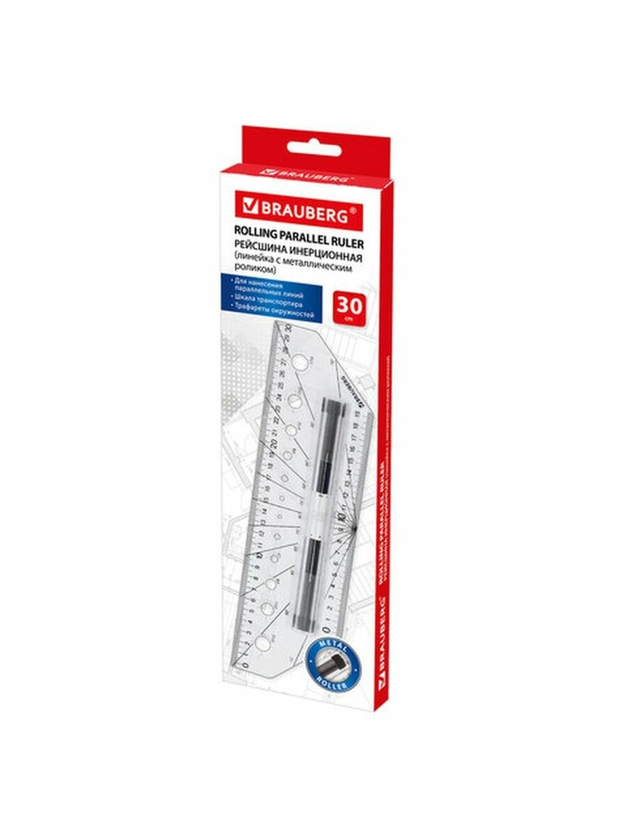 Линейка с роликом (рейсшина) 30 см, BRAUBERG, металлический ролик, коробка с подвесом, 210647 (цена за 1 ед.товара)