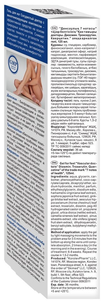 Гель для ног 7 нот здоровья Сосудистый Доктор (диосмин/троксерутин/кверцетин) гель для ног 125мл. КоролёвФарм