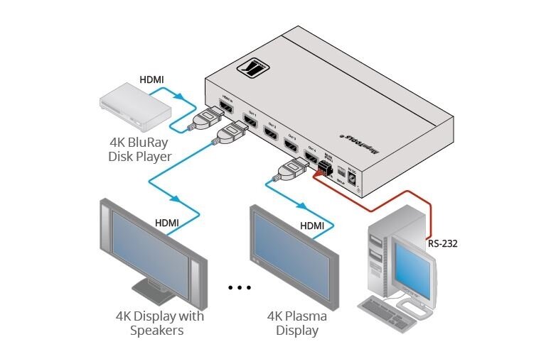 Купить Kramer [vm-4h2] усилитель-распределитель 1:4 hdmi uhd; поддержка 4k, hdmi 2.0