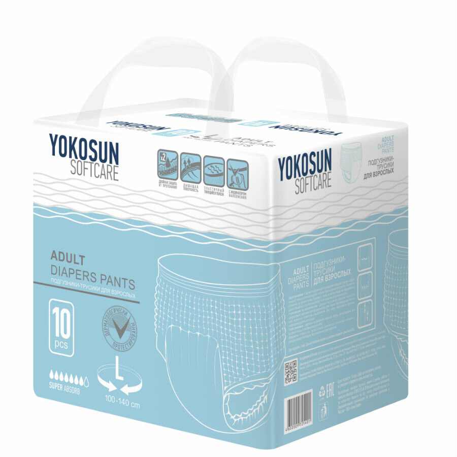 Подгузники-трусики для взрослых YokoSun, размер L, 10 шт., упак