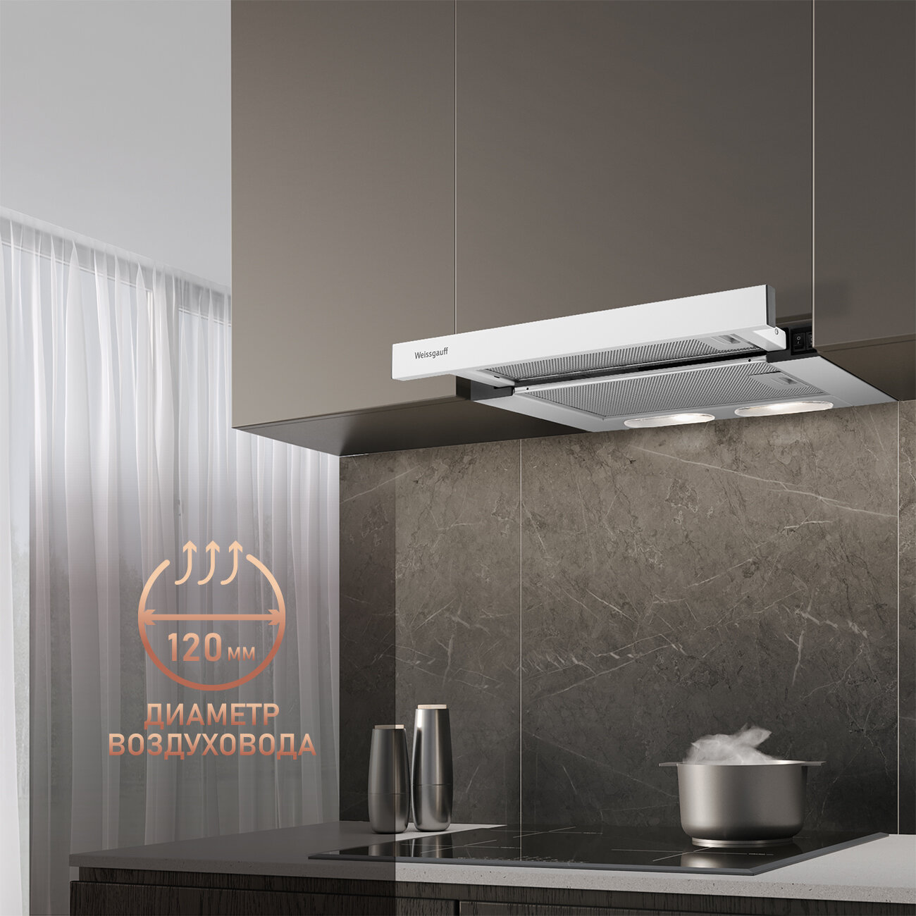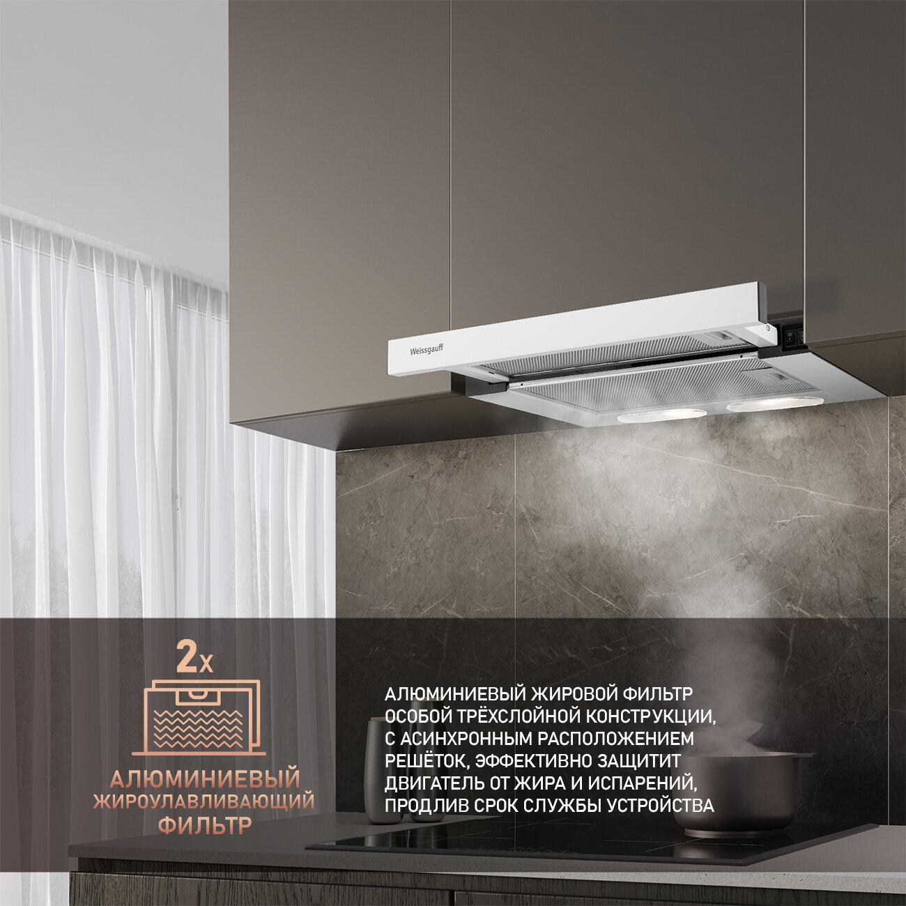 Купить Кухонная встраиваемая вытяжка Weissgauff TEL 450 EW 3 года гарантии, Алюминиевый жировой фильтр, Низкий уровень шума