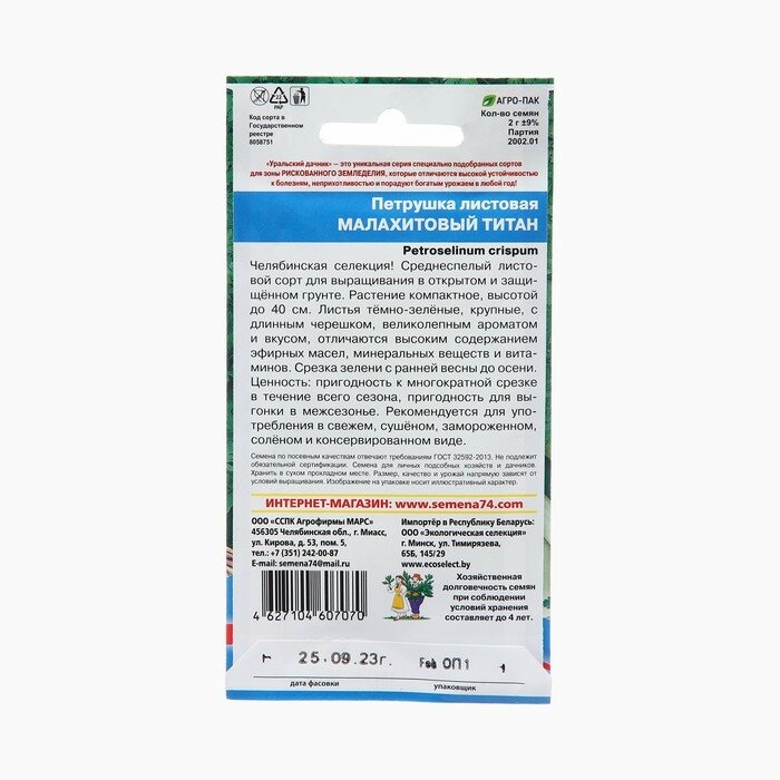 СохранитьСемена Петрушка Малахитовый Титан листовая 2г (Уральский Дачник) интересное: