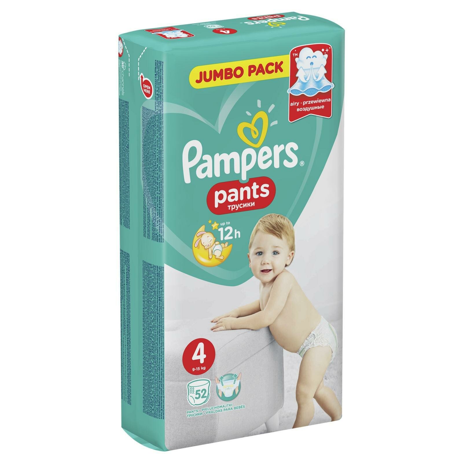 Трусики Pampers Pants, для малышей 9-15 кг, размер 4, 52 шт.