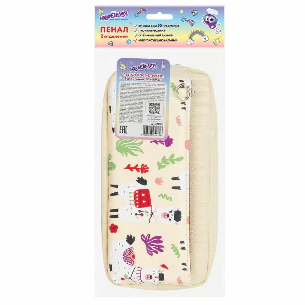 СохранитьПенал Юнландия, 2 отделения, мягкий, полиэстер, Ламы, бежевый, 20х6х9 см, 228981 интересное: