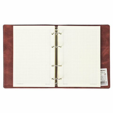 Тетрадь BRAUBERG Main на кольцах А5, 120л, кожзам, клетка, коричневый 401710