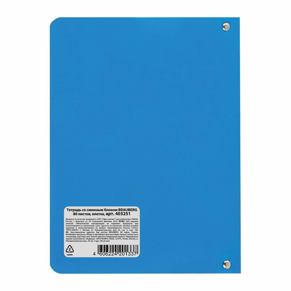 СохранитьТетрадь на кольцах А5 160х215 мм, 80 л., пластик, клетка, BRAUBERG, "Голубой" интересное: