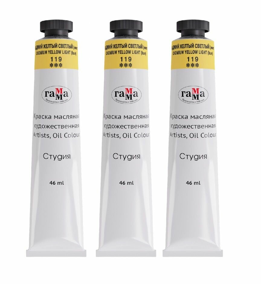 Краска масляная художественная Гамма "Студия", туба 46мл, кадмий желтый светлый (имитация) (0.00.А046.119), 3шт.