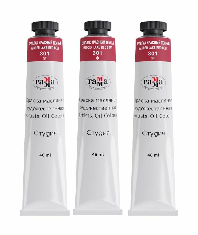 Купить Краска Масляная Художественная гамма "Студия", 46мл. Краплак Красный Темный (3 шт)