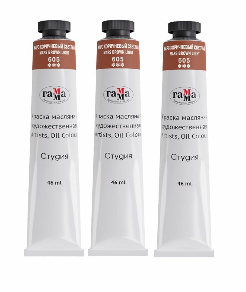 3 шт - Краска масляная художественная Гамма "Студия", 46мл, туба, марс коричневый светлый