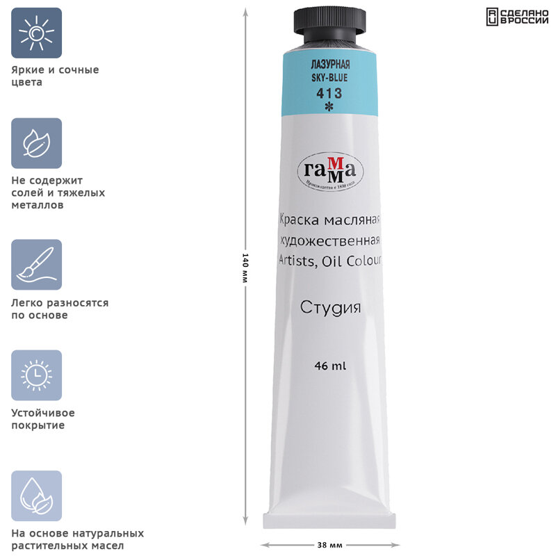 Краска масляная Гамма "Студия", 46мл, лазурная