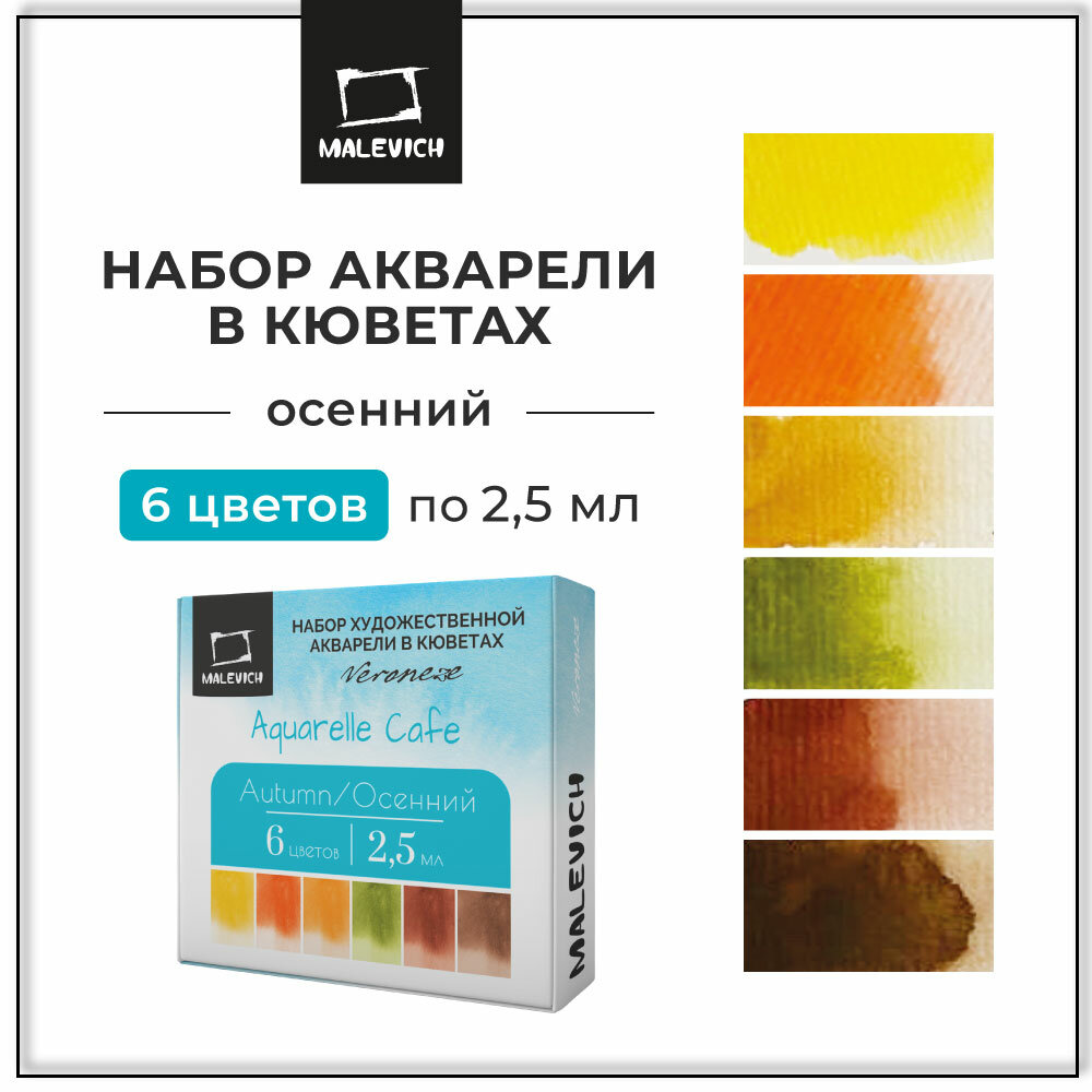 Купить Набор художественной акварели в кюветах Veroneze Осенний 2,5 мл, 6 цветов, акварельные краски для рисования