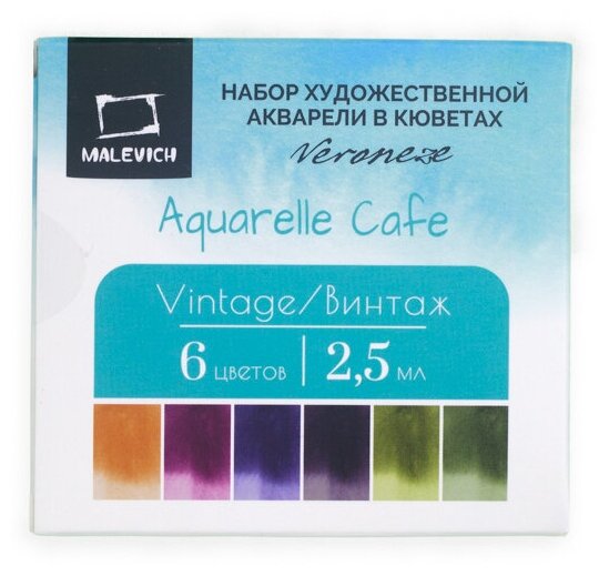 Купить Набор художественной акварели в кюветах Veroneze Винтаж 2,5 мл, 6 цветов, акварельные краски для рисования