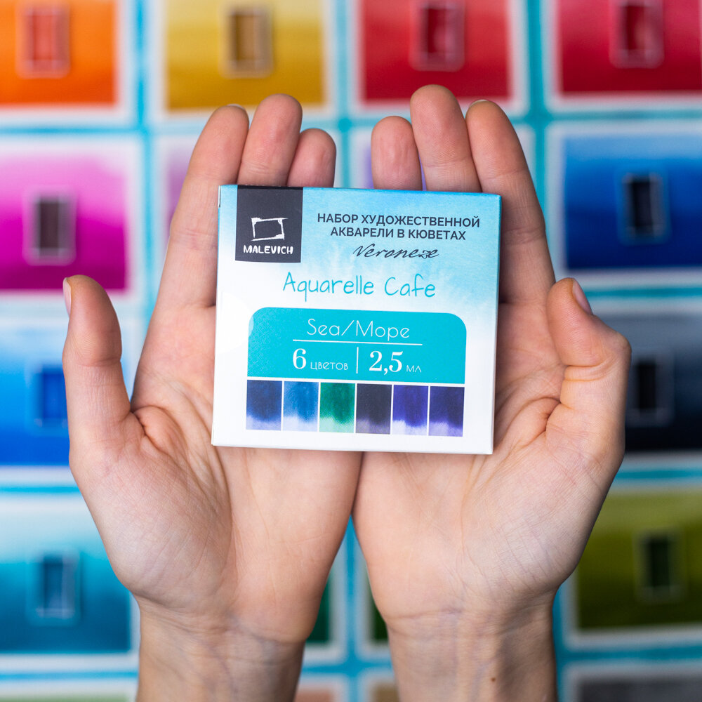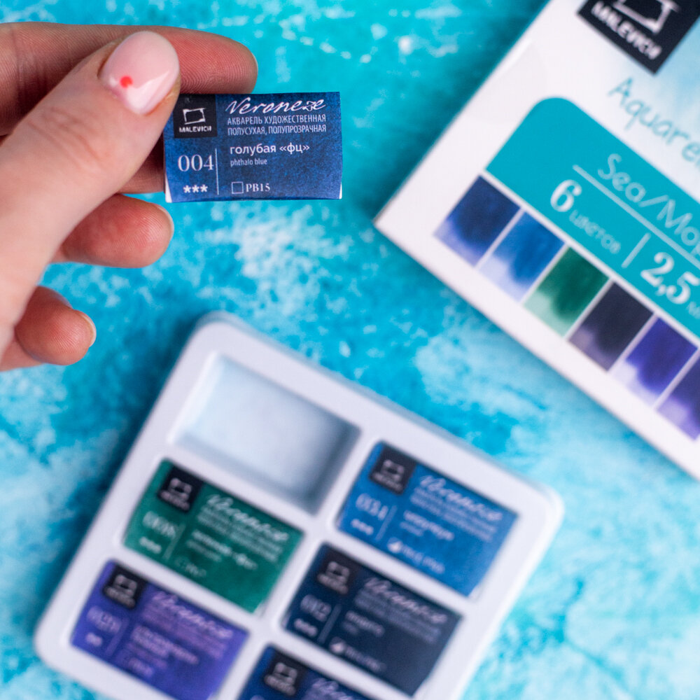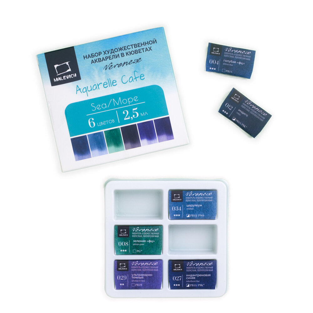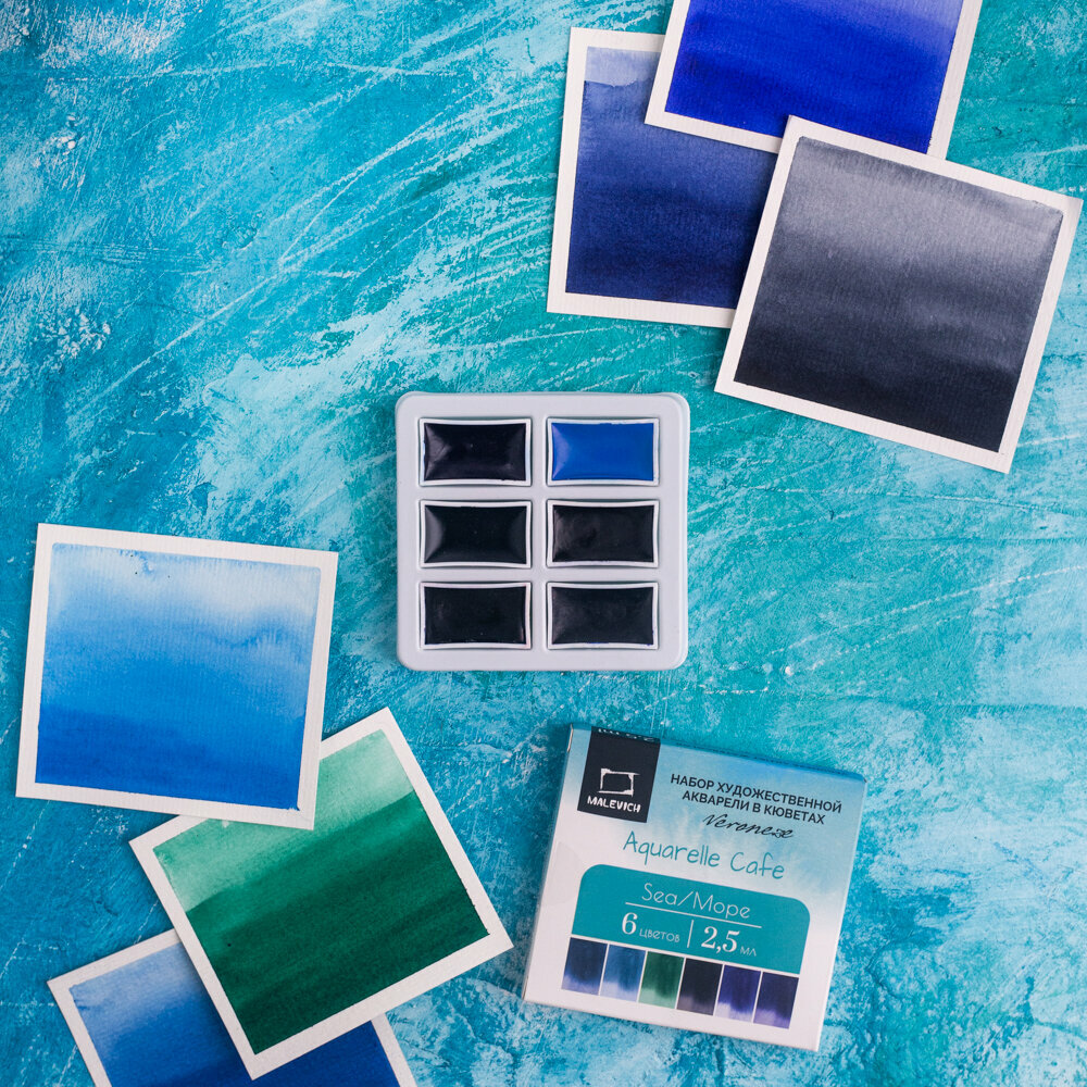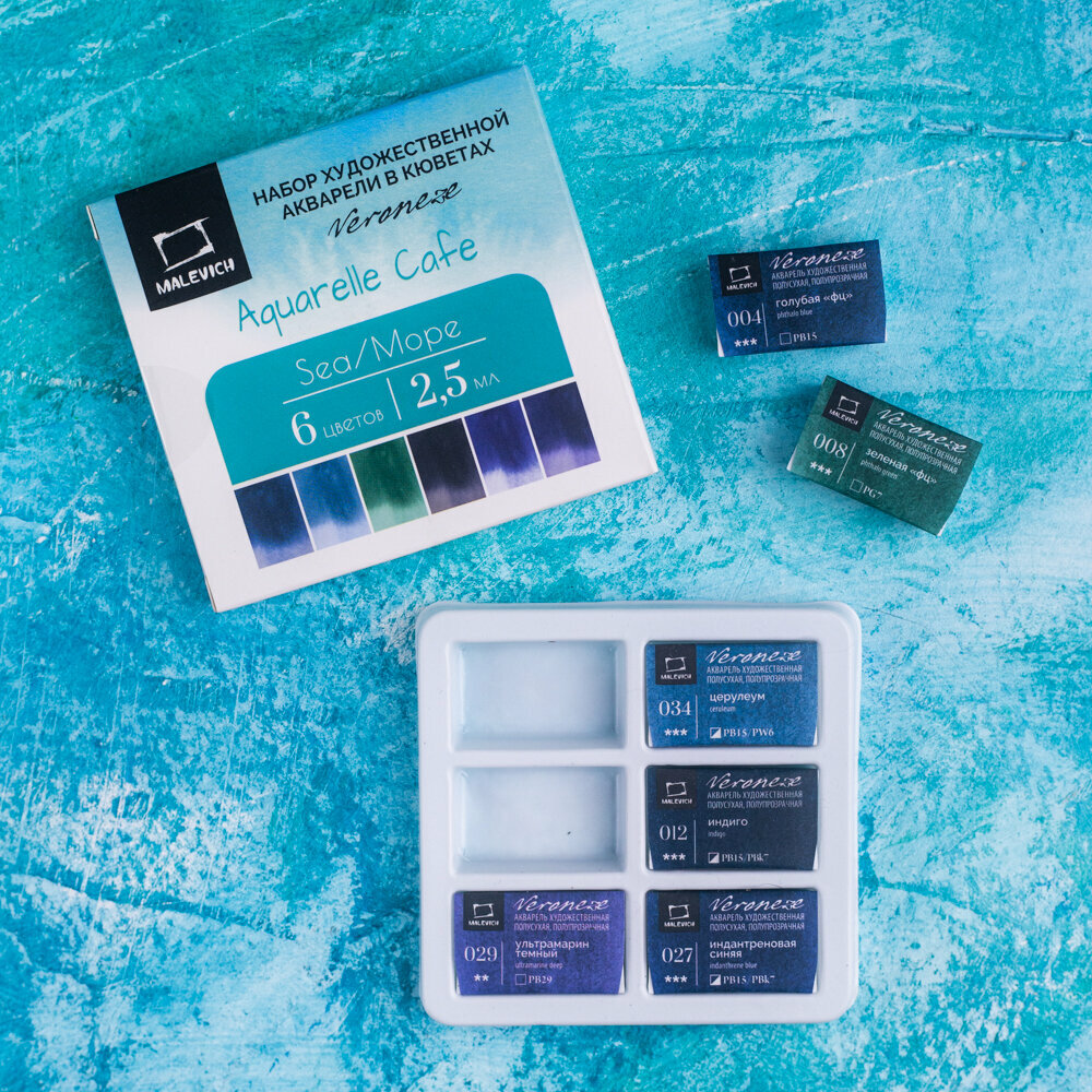 Купить Набор художественной акварели в кюветах Veroneze Sea Море, 2,5 мл, 6 цветов, акварельные краски для рисования