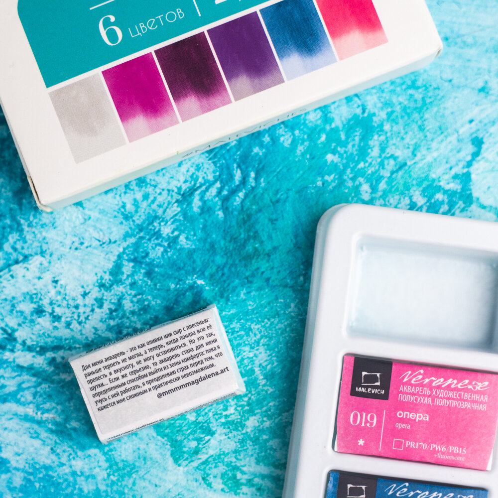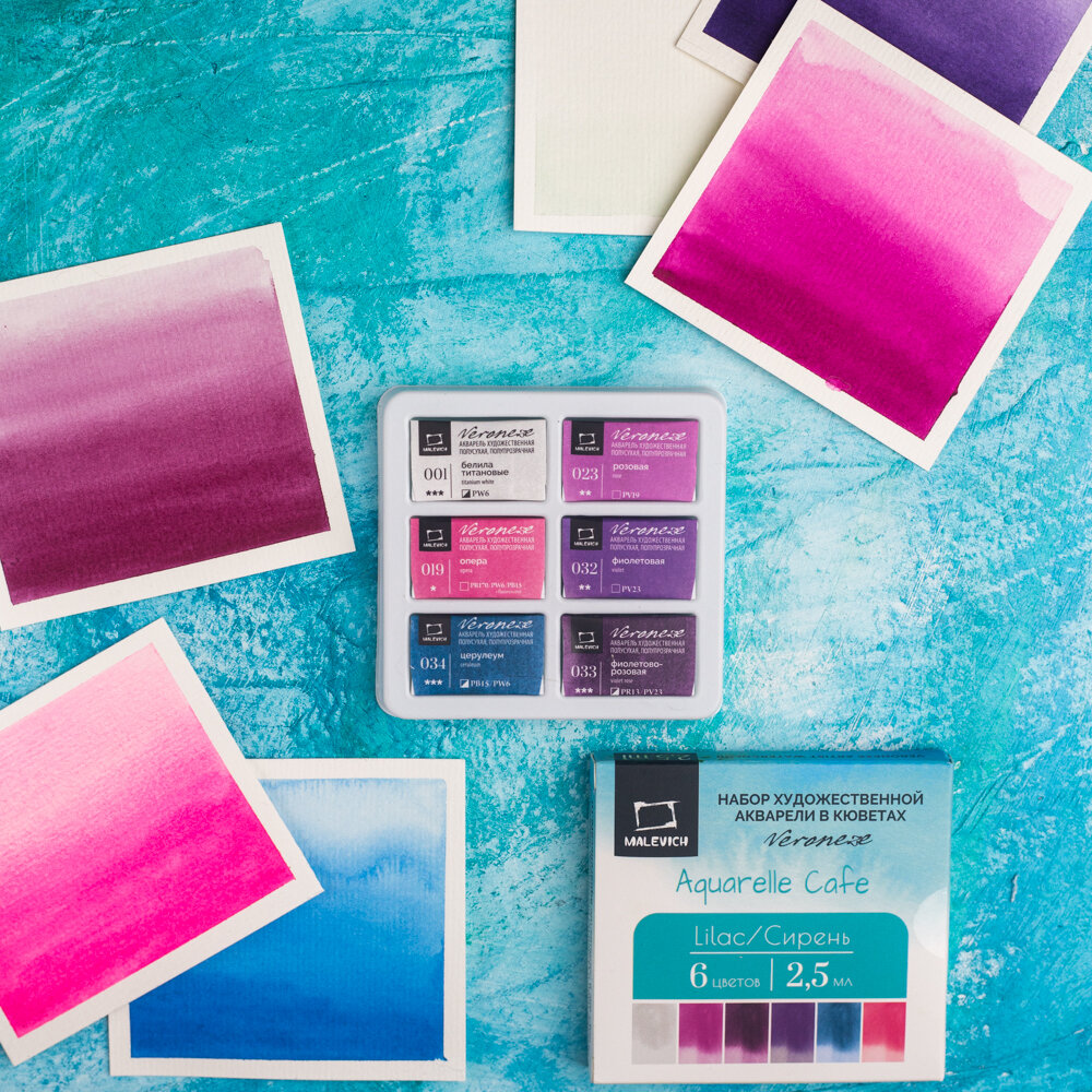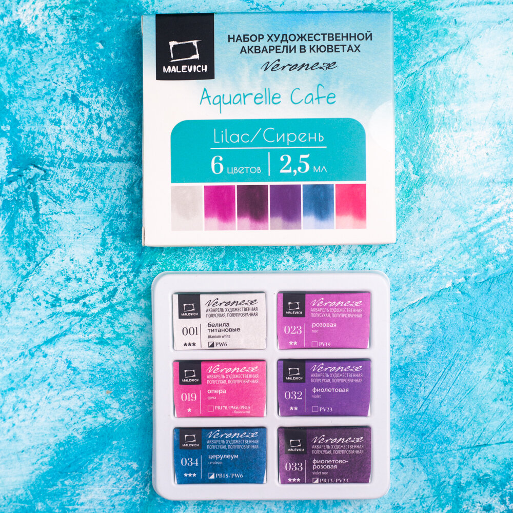 Купить Набор художественной акварели в кюветах Veroneze Сирень 2,5 мл, 6 цветов, акварельные краски для рисования