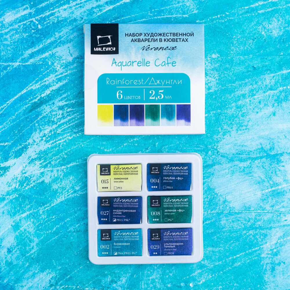 СохранитьНабор художественной акварели в кюветах Veroneze Джунгли 2,5 мл, 6 цветов, акварельные краски для рисования интересное: