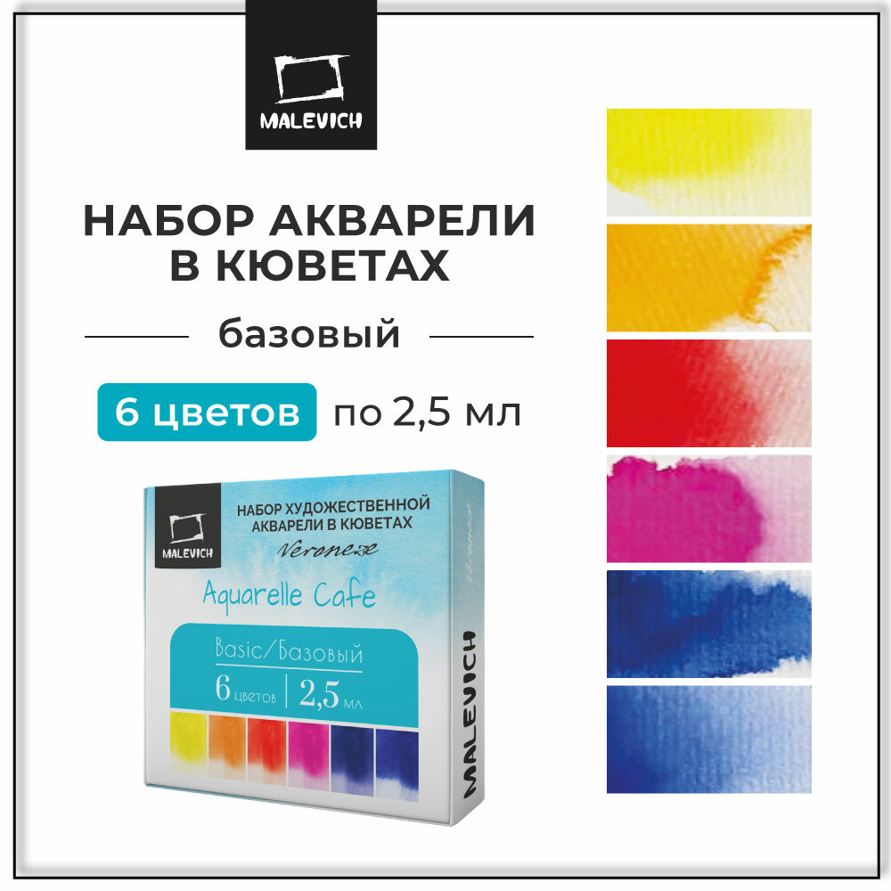 Купить Набор художественной акварели в кюветах Veroneze Basic 2,5 мл, 6 цветов, акварельные краски для рисования