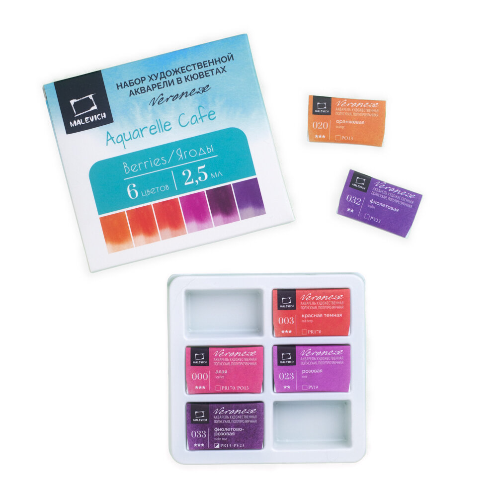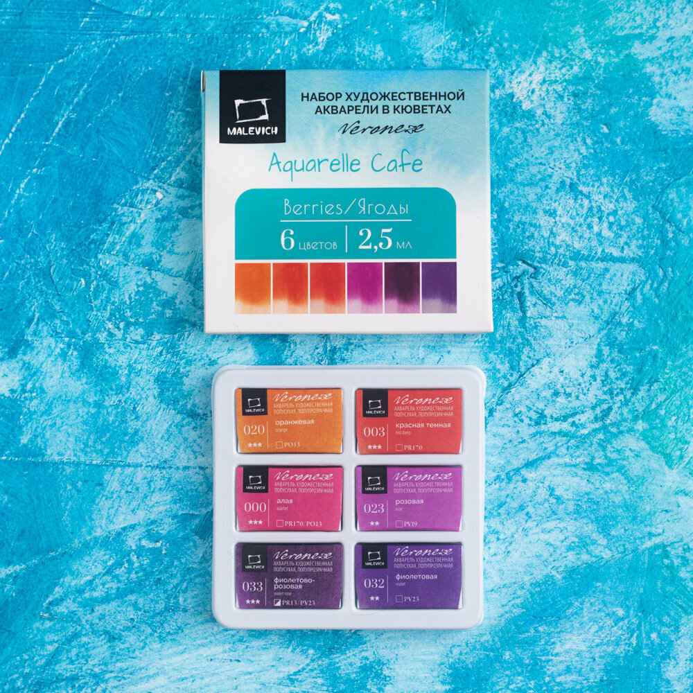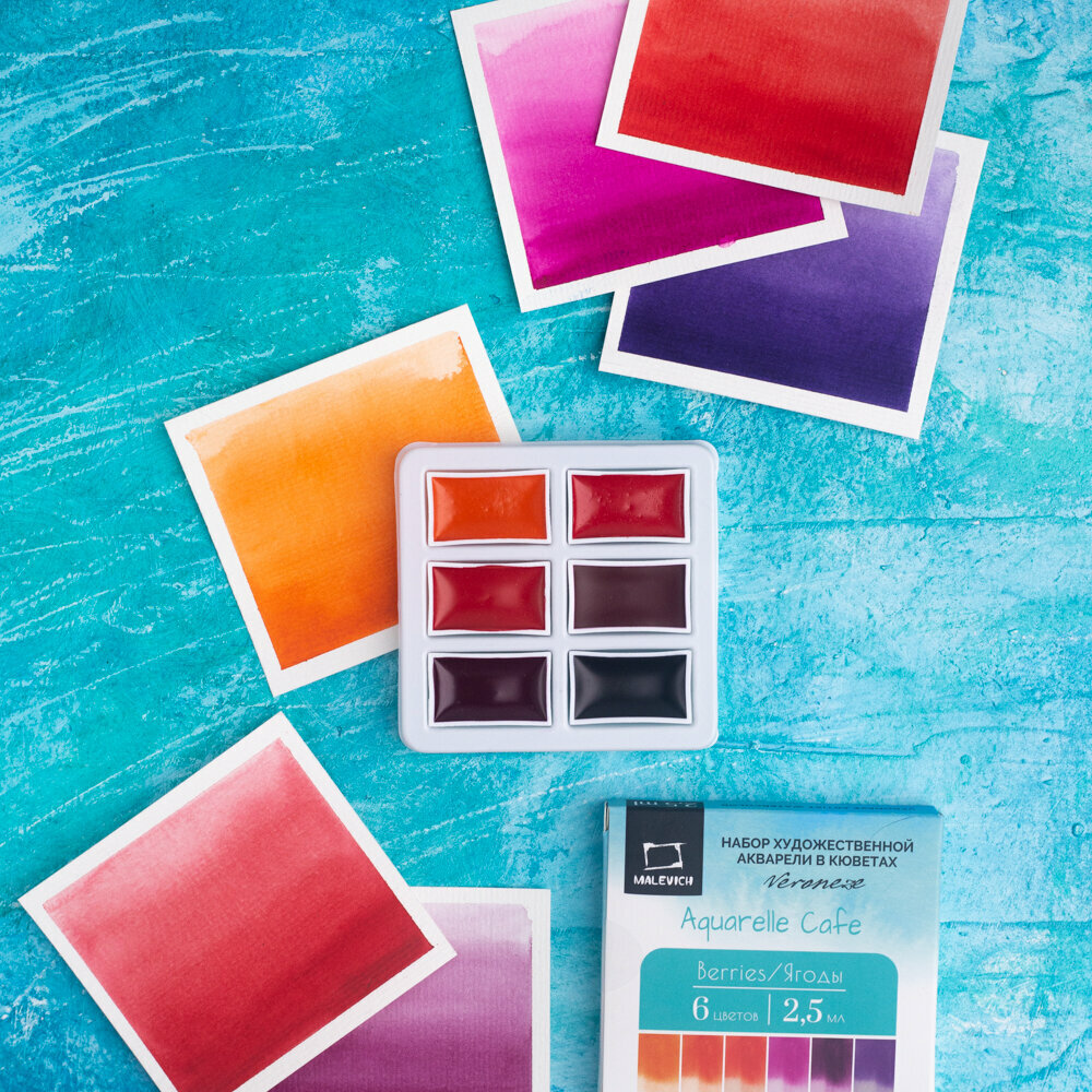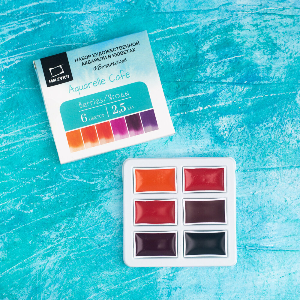 Купить Набор художественной акварели в кюветах Veroneze Ягоды 2,5 мл, 6 цветов, акварельные краски для рисования