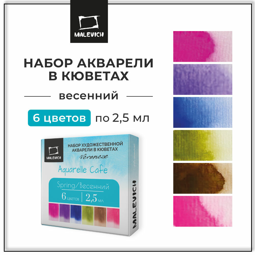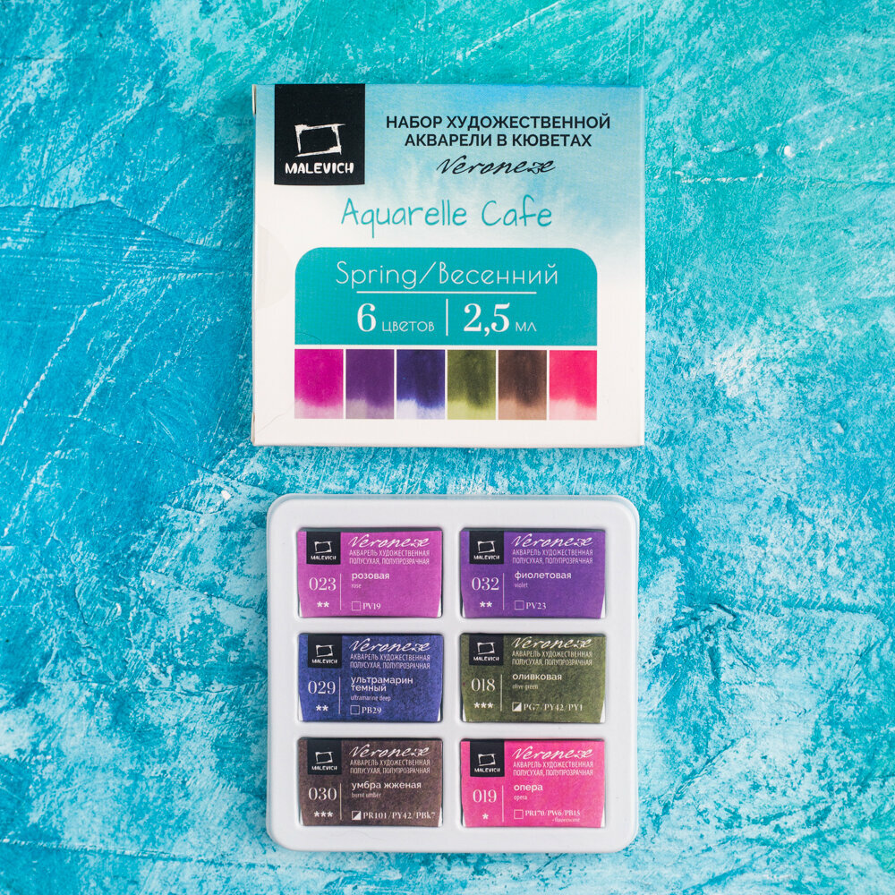 Купить Набор художественной акварели в кюветах Veroneze Весенний 2,5 мл, 6 цветов, акварельные краски для рисования