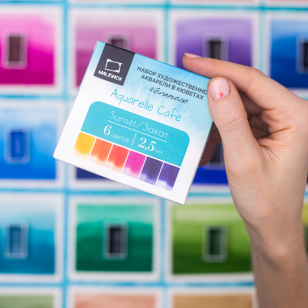 Ниже Вы можете прочитать отзывы на Набор акварели Малевичъ "Veroneze" 6 цветов, кюветы по 2,5мл, Закат, ознакомится с подробными характеристиками, посмотреть интересные обзоры и фотографии на Набор акварели Малевичъ "Veroneze" 6 цветов, кюветы по 2,5мл, Закат.