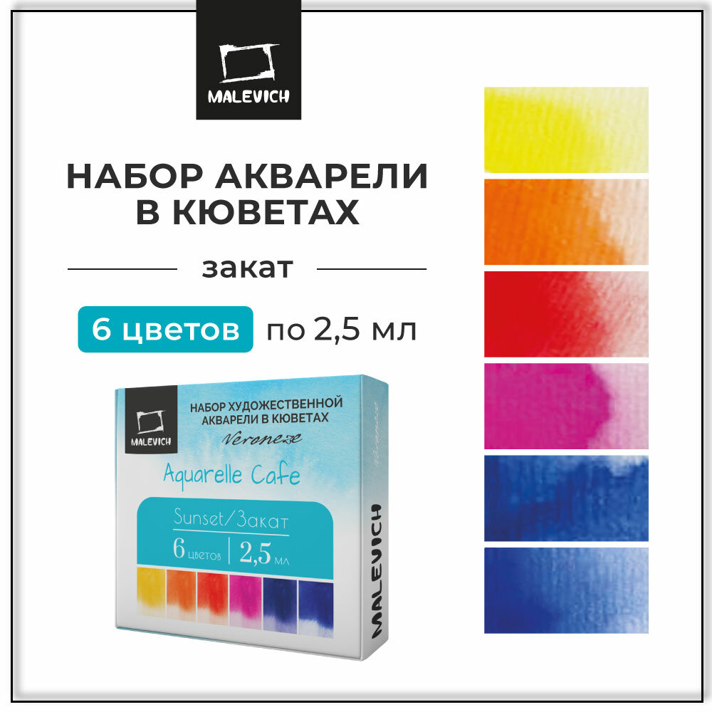 Купить Набор акварели Малевичъ "Veroneze" 6 цветов, кюветы по 2,5мл, Закат