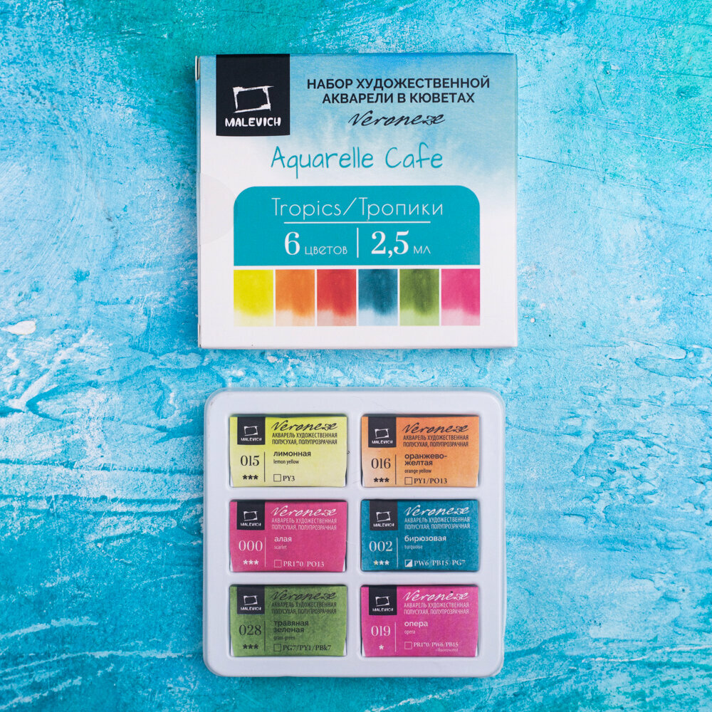 СохранитьНабор художественной акварели в кюветах Veroneze Тропики 2,5 мл, 6 цветов, акварельные краски для рисования интересное: