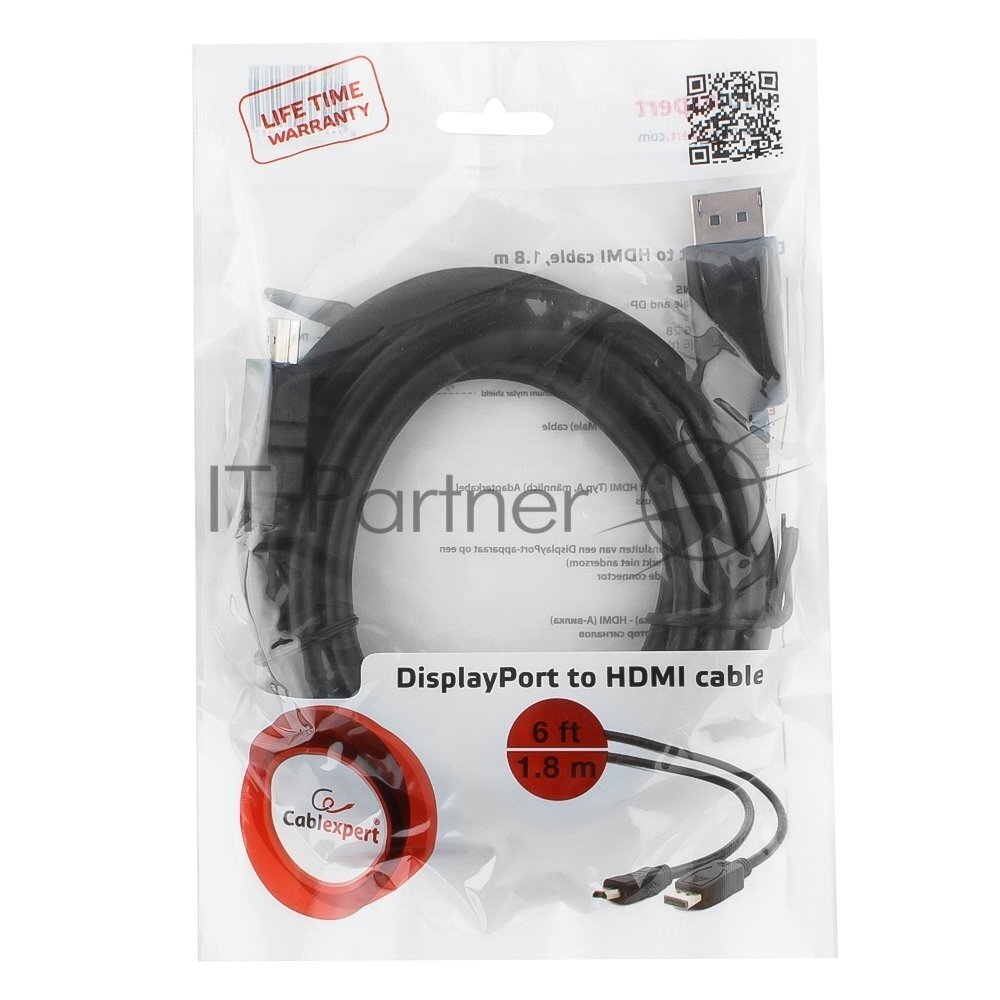 Кабель DisplayPort- Hdmi Cablexpert 1.8m 20M/19M, черный, экран [cc-dp-hdmi-6]
