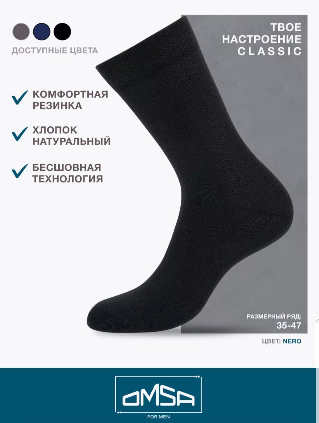 Омса (Omsa). Носки мужские х/б 401 OMSA Eco nero 4. 45-47