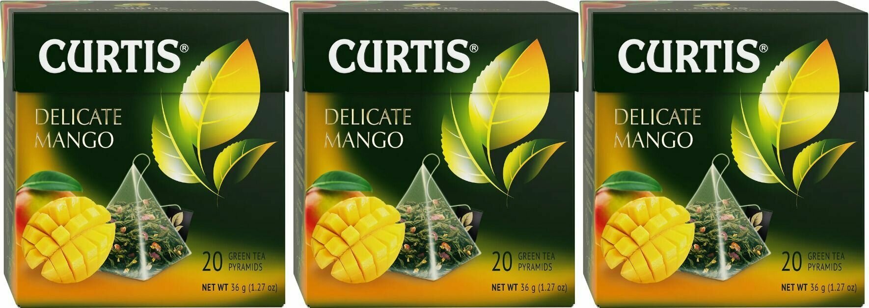 Чай в пирамидках, "Curtis Delicate Mango Green Tea", зеленый, аромат, (20 пакетиков по 1,8г) 2 упаковки