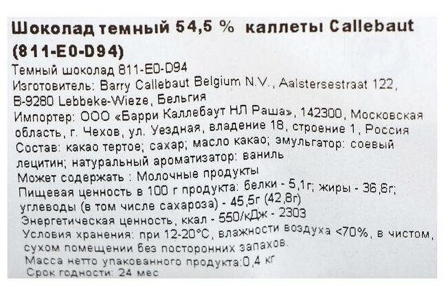 | Производитель | Callebaut |