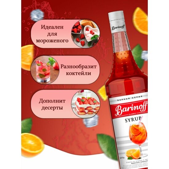 Купить Сироп Barinoff Апероль / Красный апельсин (для коктейлей, десертов, лимонада и мороженого), 1л