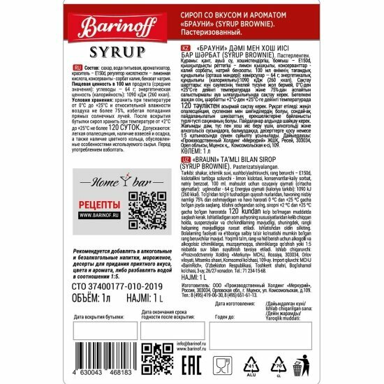СохранитьСироп Barinoff Брауни (для кофе, коктейлей, десертов, лимонада и мороженого), 1л интересное: