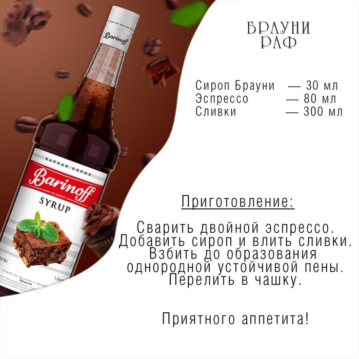 Купить Сироп Barinoff Брауни (для кофе, коктейлей, десертов, лимонада и мороженого), 1л