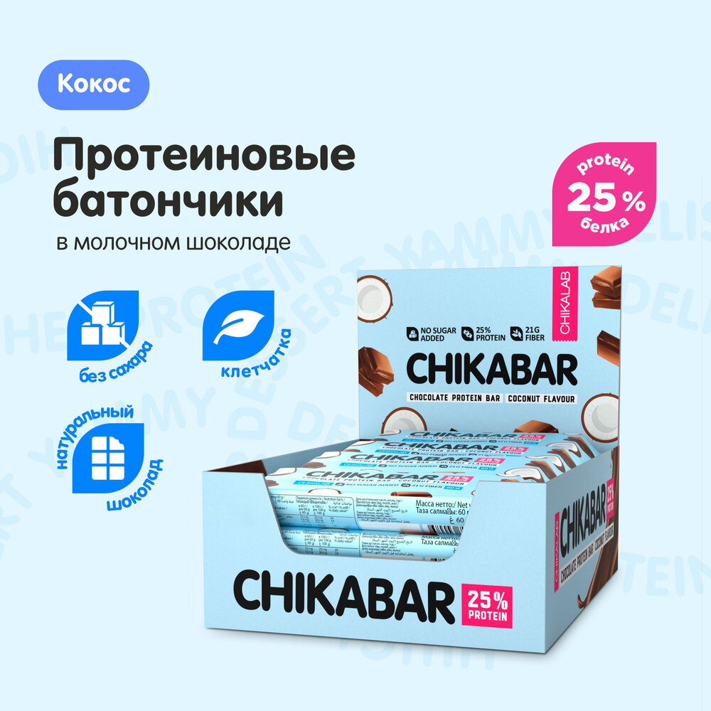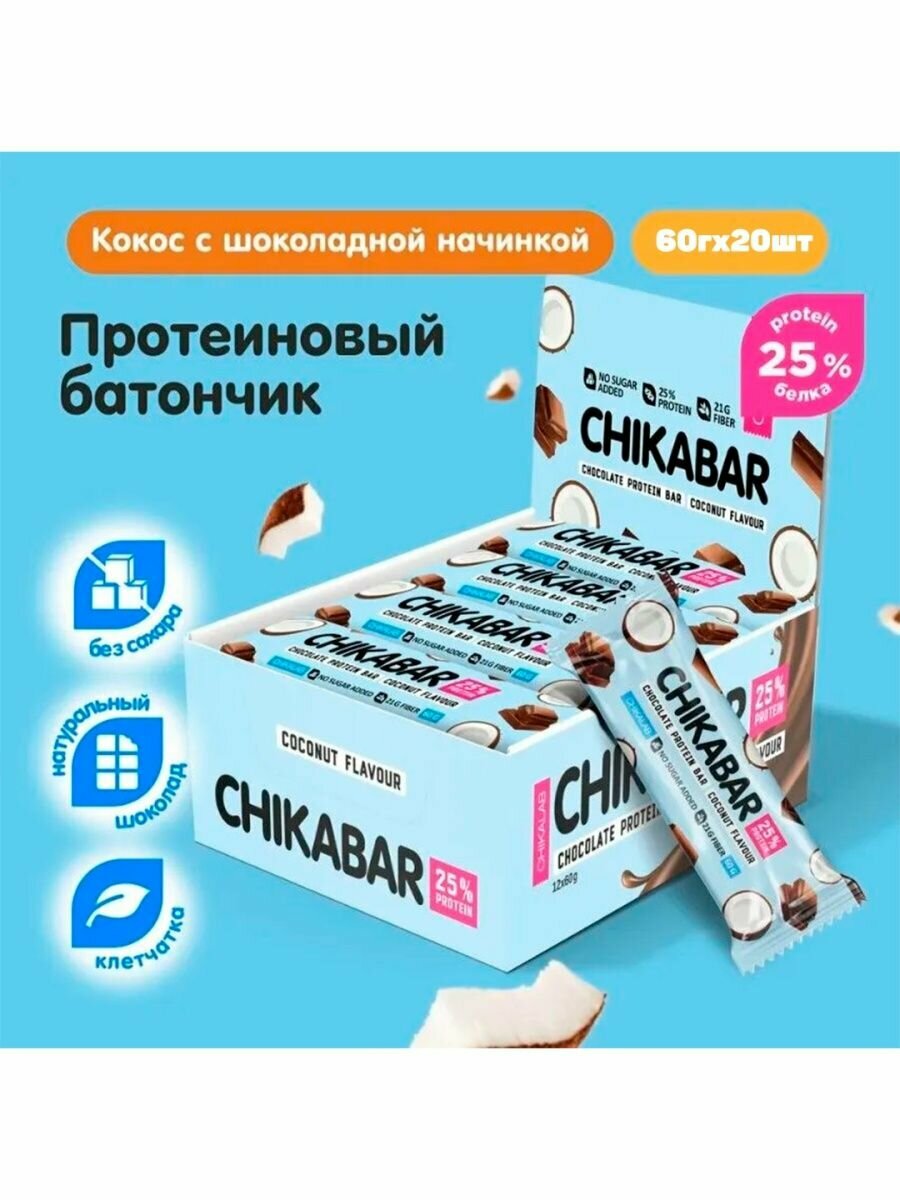 Протеиновый батончик Chikalab Chikabar 20 шт x 60 г, Кокос