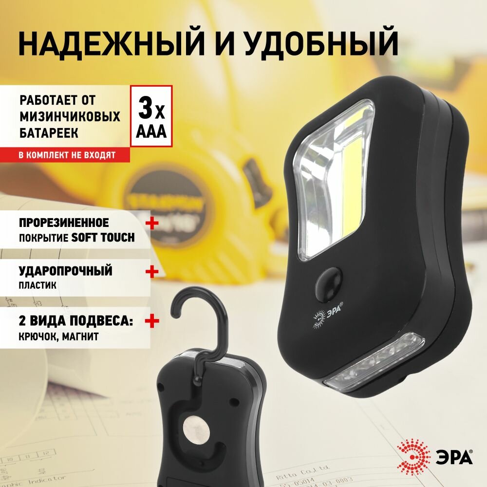Купить Фонарь ручной светодиодный ЭРА RB-601 мощный на батарейках / Карманный фонарик кемпинговый туристический 2 режима, с крючком, на магните