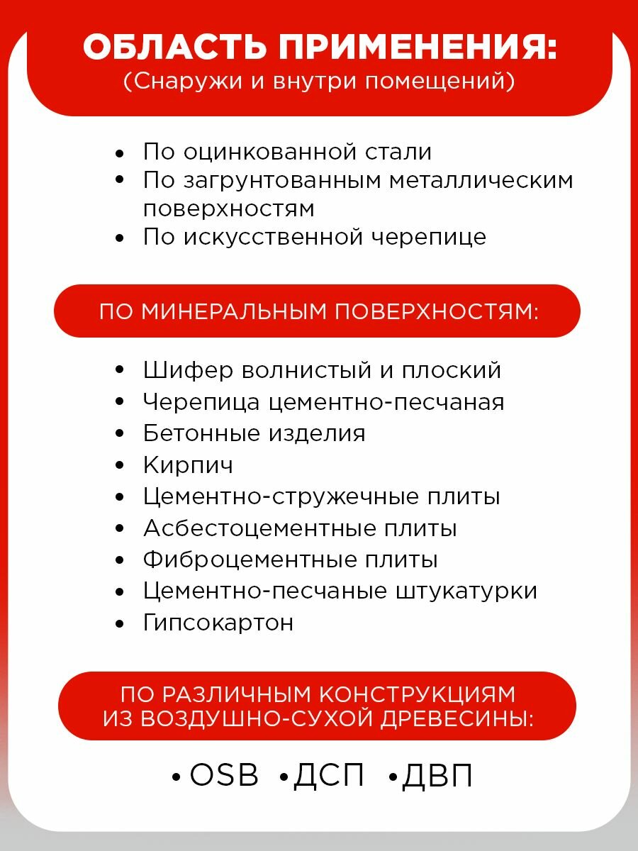 | Материал обработки | бетон / гипсокартон / дерево / кирпич / металл / минеральная поверхность / обои / оштукатуренная поверхность / шифер |